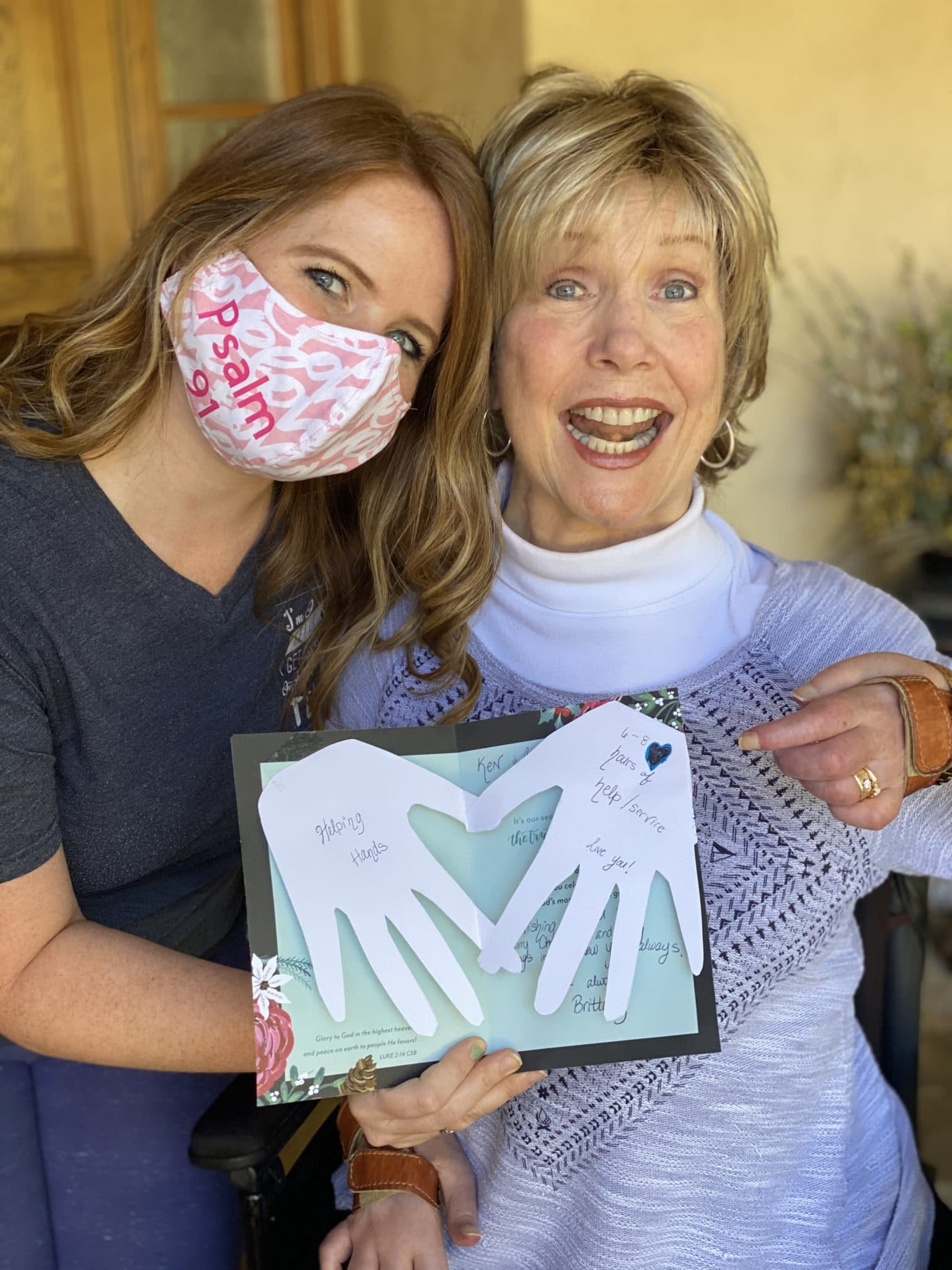 Brittany is doing just that. She’s serving Christ by volunteering just a couple of hours to be my hands with any household task for which I need assistance – and I love her creative card that drives it home. In fact, I have posted a fun photo of me and Britt and her cute little gift card with those cut-out hands. So take a look at it today at joniradio.org, and be inspired to do the same. Again, don’t miss the photo with our winning smiles, posted for you at joniradio.org. And also, as you help the disabled, remember you’re serving the Lord on this National Volunteer Week. God bless you today, and thanks for listening to Joni and Friends!