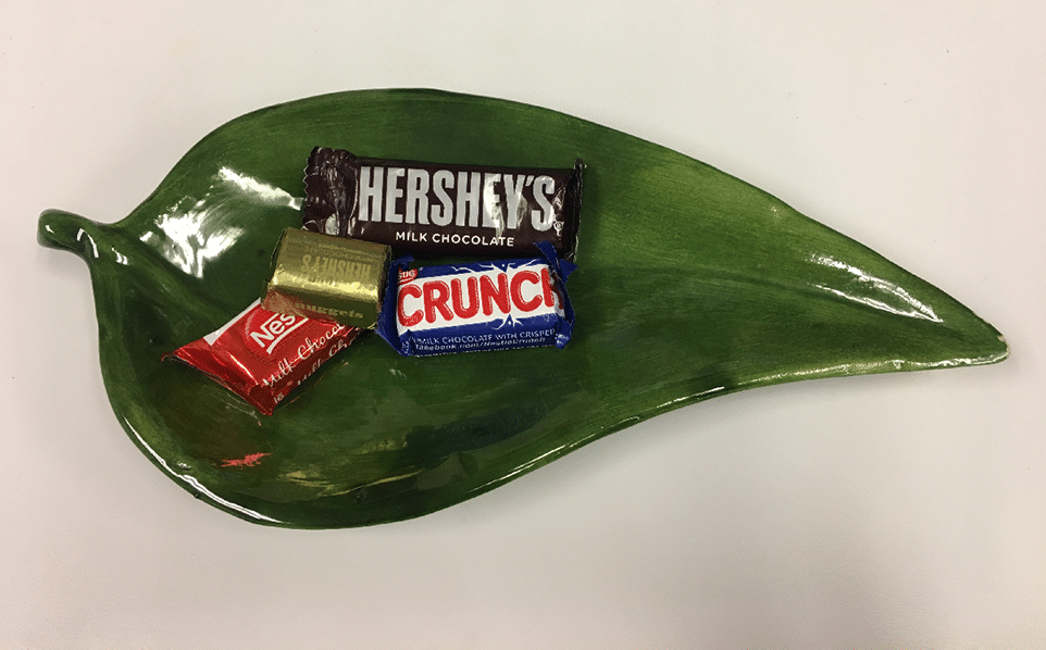 Anyway! There I am lying face down and my occupational therapist slides a small table underneath my face close enough that I can reach it with a brush. She places on the little table the poster paint and the candy dish, sticks the brush in my mouth, and tells me to “paint away!” And that I did. Finesse did not matter; I just had to kinda take aim and slather and swash green paint on one dish, and red on the other. My OT was so patient, moving the dishes this way and that so I could reach all the corners. And I did not even drool! The dishes were glazed, went into the kiln, and afterward, I was just so amazed! I made something and it was beautiful. And my mom and dad, they were so delighted to receive something that I had done, that I had created with my mouth.