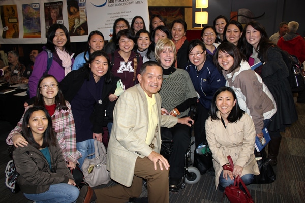 We’ve only been here in the San Francisco Bay Area for two days, but we’ve done a week’s worth of work…. And have had great fun, doing it! Ken and I just returned from a very successful Pastors’ Luncheon with over 200 attending; they are all on fire about sending their church leaders to our next Disability Ministry Training Day coming up in April. I’ve spoken at two churches thus far, mobilizing more people to come and serve as volunteers at our Family Retreats this summer… had lots of sign-ups! This photo shows all the happy faces from Grace Point Church located near the campus of UC Berkeley – most of them are students or former students who have a heart to reach their campus for Christ!, And now, we’ve got them jived about serving at Family Retreats! Tonight it’s another event, then three more churches this weekend before we head back down to LA this coming Monday. I’ve loved checking in on the blog and it’s been great reading Facebook — please continue to pray that my energy holds up, that pain levels stay down, and that our message is well received. To God be the glory… and may many more people with disabilities come to Jesus!