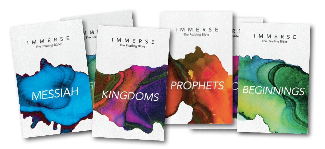 The Bible is an invitation to discover God’s Story… so the best thing we can do is Immerse ourselves into it. Especially for summertime reading. I realize you might not normally place the Bible on your summer book list, but this special series is like reading a paperback without chapter or verse breaks (for uninterrupted reading). The Immerse Reading Bible is available in six volumes. Messiah is the first volume and walks you through the entire New Testament. Beginnings is the second volume and takes you through the first five books of the Bible. Kingdoms is the third volume and tells the story of Joshua, Judges, Ruth, and the books of Samuel and Kings. Chronicles is the fourth volume and takes you through 1-2 Chronicles, Ezra, Nehemiah, Esther, and Daniel. Poets is the fifth volume and presents Psalms, Lamentations, Song of Songs, Proverbs, Ecclesiastes, and Job. Lastly, there is Prophets, taking you from Jonah to Malachi. So if you are looking to approach God’s Word in a fresh way this summer, I recommend the new Immerse Reading Bible!