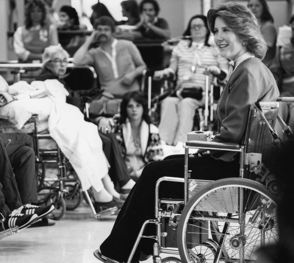 She says, “Here’s a Savior who understands what it means to be paralyzed, nailed on that cross. Jesus, the most God-forsaken man who ever lived, leaned on God through his own suffering. And he did it so that we might never ever be forsaken by the Father in our suffering.”
