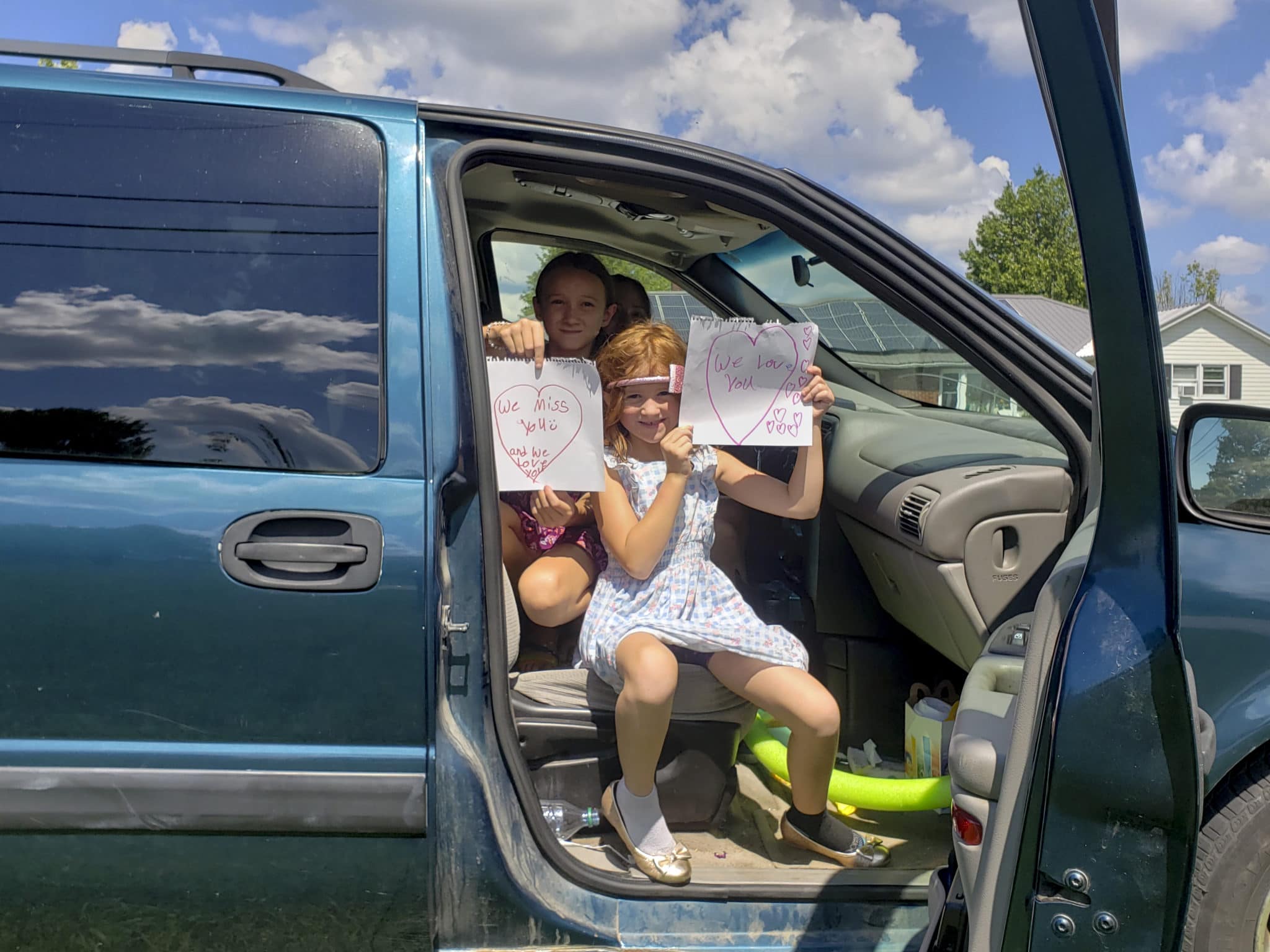 Volunteers planned a car parade to welcome Jose and Jennifer’s family to Family Retreat at Home. Elliana and Donovan were overjoyed to see the familiar faces of their friends driving by. Cars were decorated with balloons and friends held hand-made signs that read, “We MISS YOU!” and “Enjoy your week!” A welcome box of supplies needed for the week was delivered to their home.