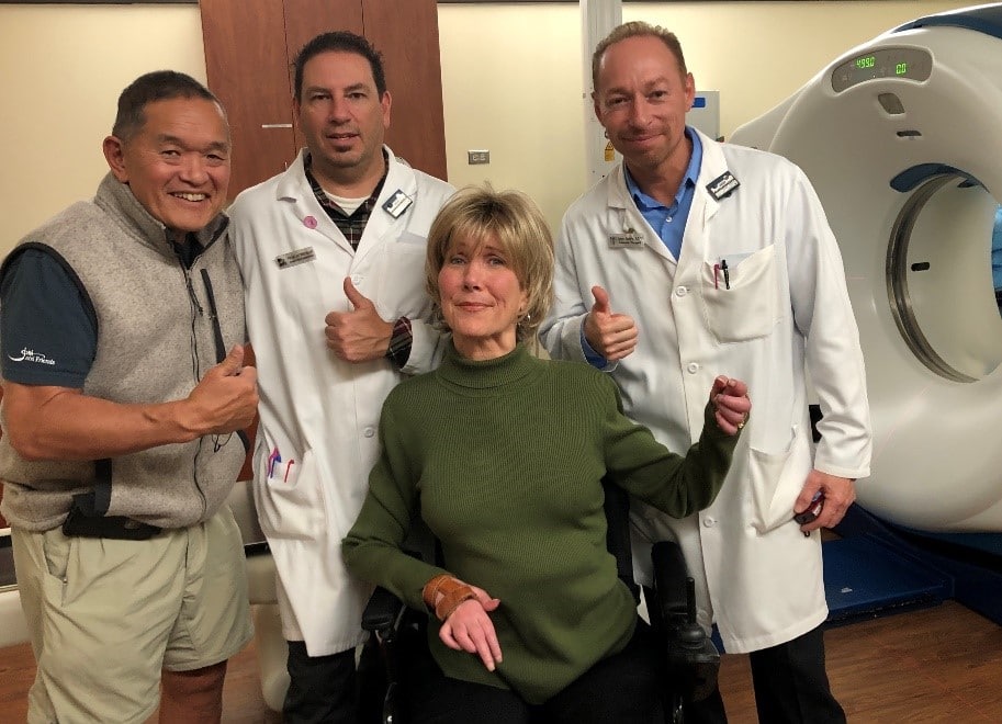 During my visit, we started off with a CT scan supervised by Paul and Jason, in the picture above. These guys are about to become very close friends! Starting in the first part of January, they will be delivering the radiation every day for 7 weeks.